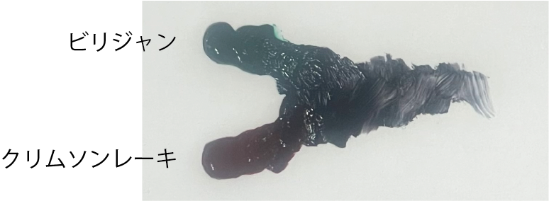 隠蔽力(下地を隠す力)が弱い透明色同士の混色なので、