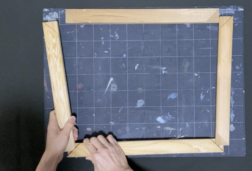 4つの角が直角になったら、木枠をしっかり押し込んで完成。
