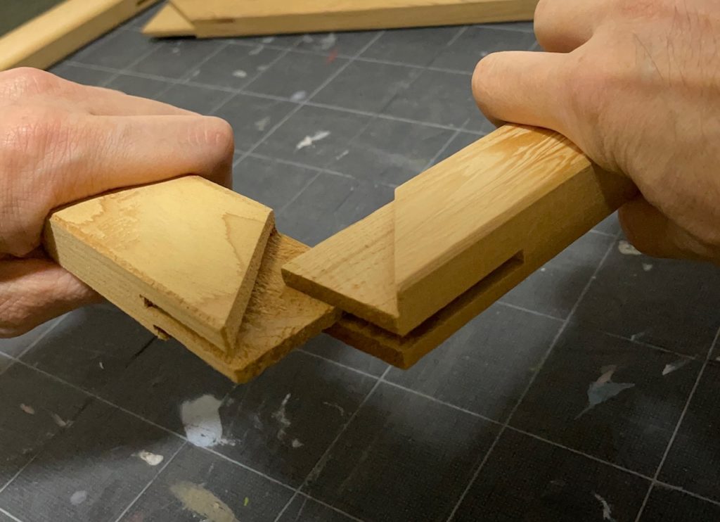 5.木枠の接合部に隙間が無いか確認する。