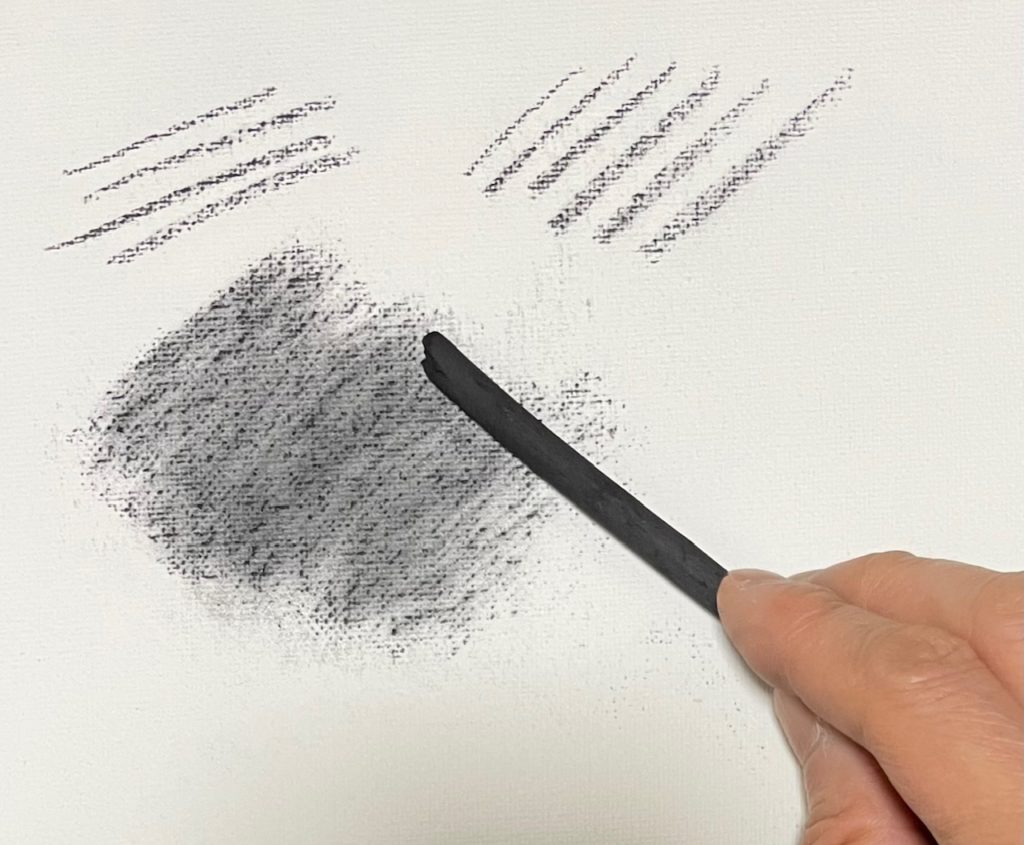 柳などの木を炭化させたもので、粒子が荒く、柔らかい線が描けます。