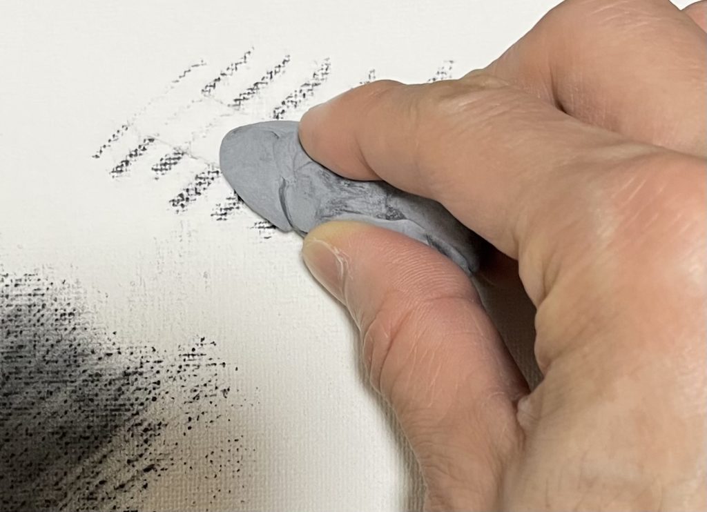 それと、木炭は消しやすいので、下絵を描きながら、消しては描いて、あれこれと試行錯誤したい場合にも向いています。