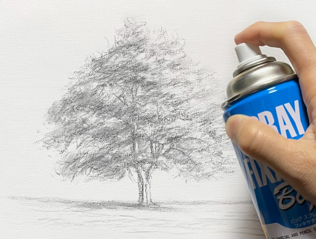 吹き付けることで、描いた線や明暗がこすれて消えたり、絵の具に混ざったりするのを防ぎます。